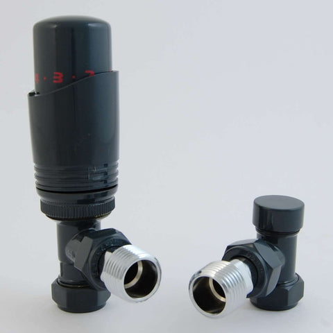 Reina Modal Modern Thermostatic Angled Radiator Valve - Anthracite