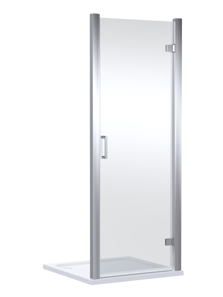 Chrome frame. Reversible outward opening hinged door. 8mm toughened safety glass. Shower tray sold separately. Suitable for use with side panels or within a recess. Rounded D shape handle. All enclosures are back by a lifetime guarantee.