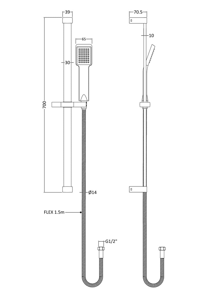 Single function rectangular handset. Suitable for low pressure. Outlet elbow not included.