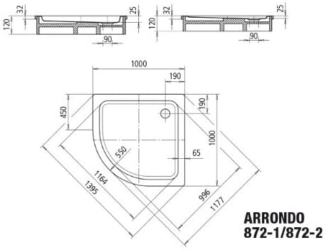 KaldeweiåʉÛÒåÊSteel Shower Tray Ambiente Arrondo 872åʉÛÒåÊ1åÊAntislip 1000åÊx 1000åÊmm Alpinweiss