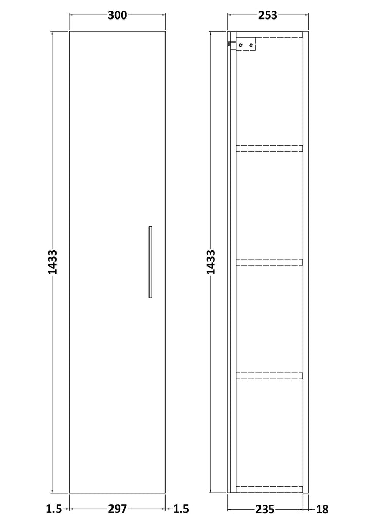 This sleek charcoal black woodgrain finish compliments any modern bathroom to create a designer look. This wall hung unit makes cleaning an easier task and creates the illusion of a bigger bathroom. This unit has soft close doors which limits the daily wear and tear and provides a quieter closing action. Colour co-ordinate your cabinet with a matching vanity and WC unit.