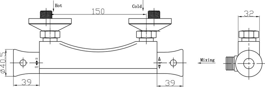 Thermostatic Bar Valve, Chrome finish, 150mm (Product Code: JTY308)