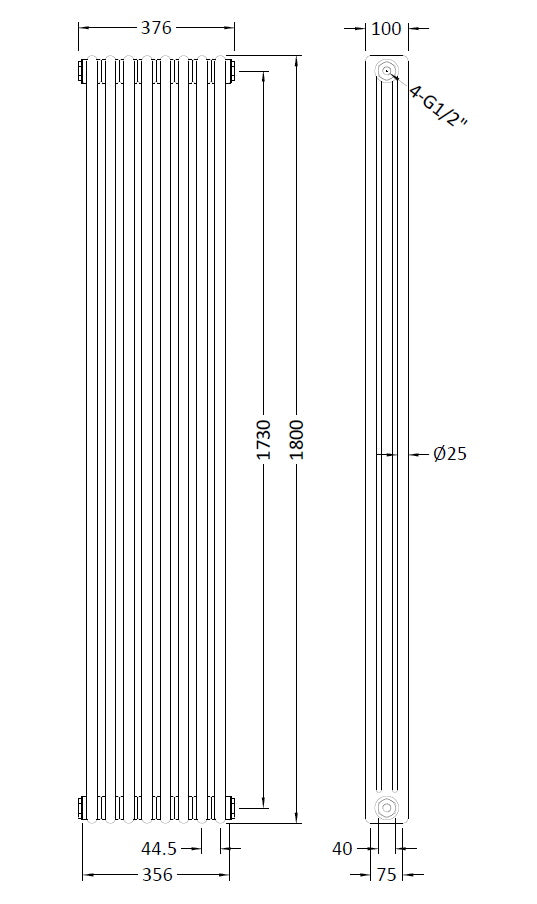 Add a classic feature to your room with this high gloss, timeless radiator. All heating products come complete with fixing screws. Valves sold separately. After installing any new radiators; when refilling the system it is recommended a suitable inhibitor is used. All tappings are 1/2 British Standard Pipe. We recommend pipework is not installed until receipt of radiator or heated towel rail.