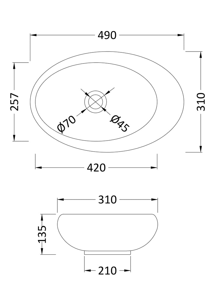 Contemporary rounded curves create a clean, neat design. Perfect for countertops. Suitable for high rise mixers. Manufactured from high quality vitreous china.