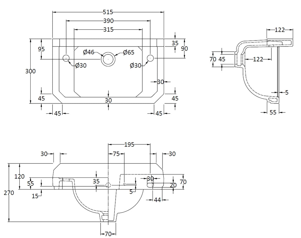 Hudson Reed 515mm Cloakroom Basin (2 Tap Hole)