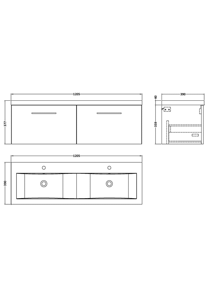 NUIE 1200mm Wall Hung 2-Drawer Vanity & Double Basin