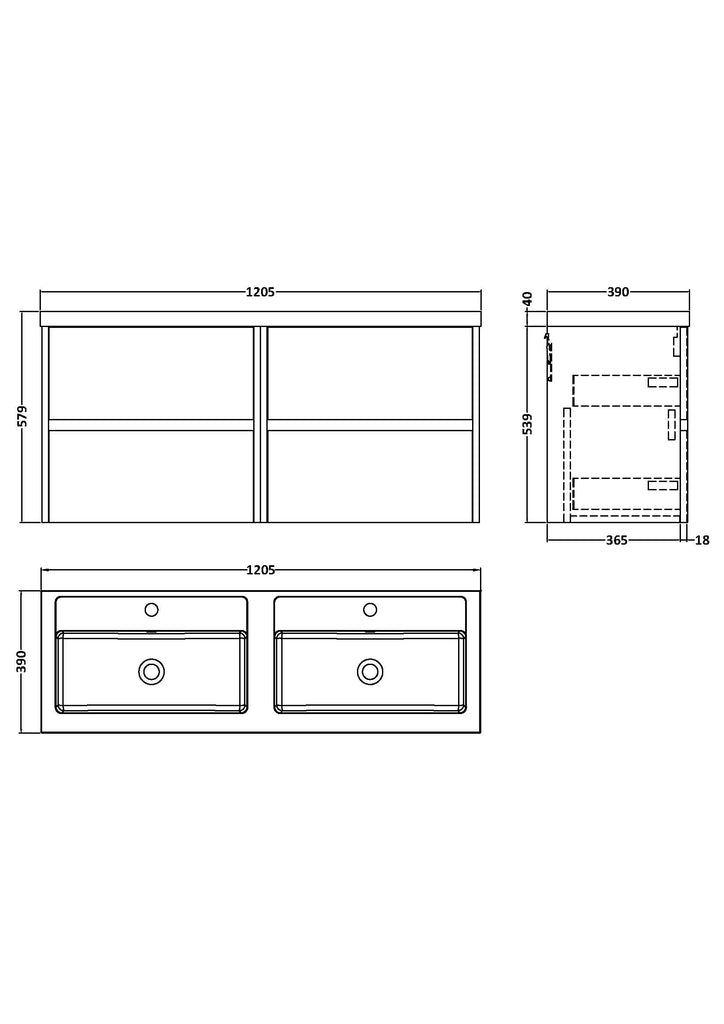 NUIE 1200mm Wall Hung 4 Drawer Unit & Double Basin