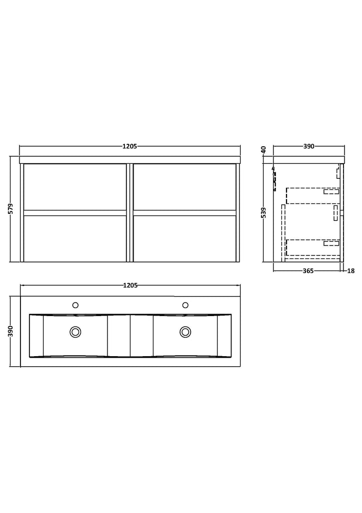 NUIE 1200mm Wall Hung 4 Drawer Unit & Double Basin