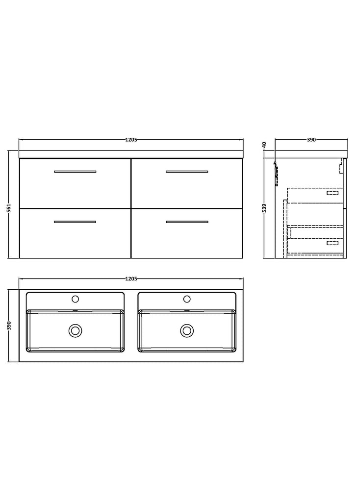NUIE 1200mm Wall Hung 4 Drawer Vanity & Double Basin