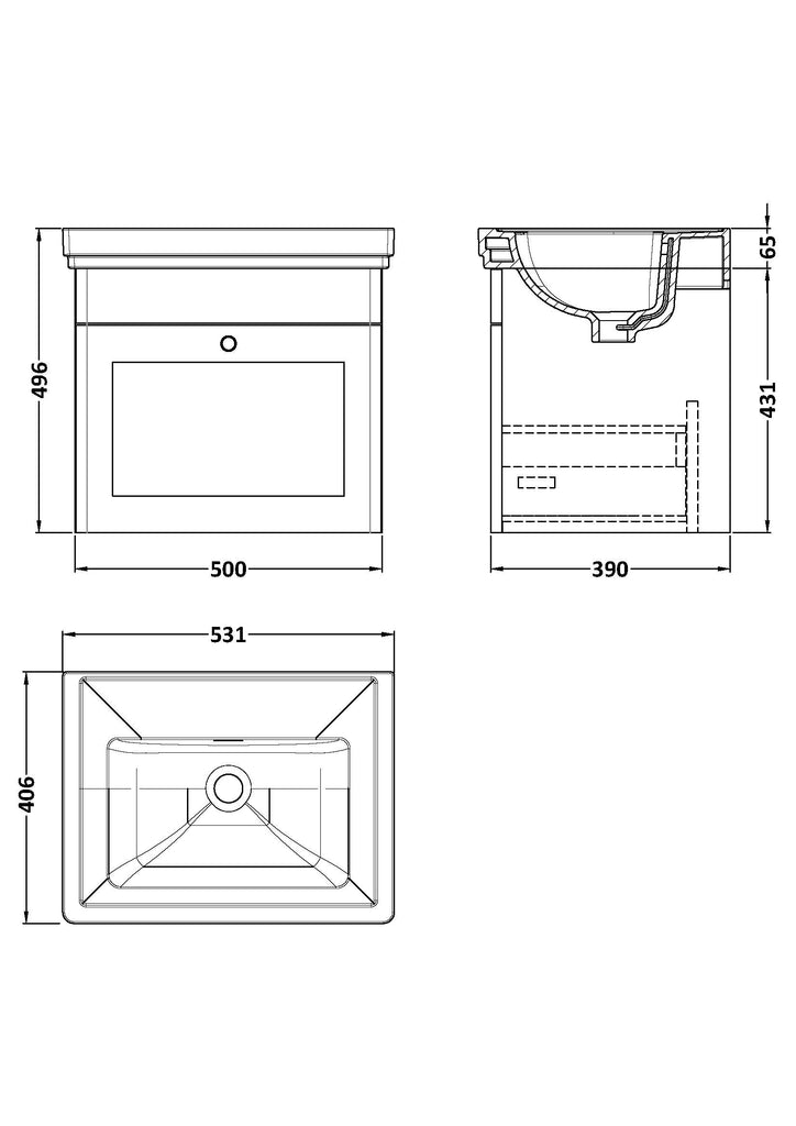 NUIE 500mm Wall Hung 1 Drawer Vanity & Basin 0TH