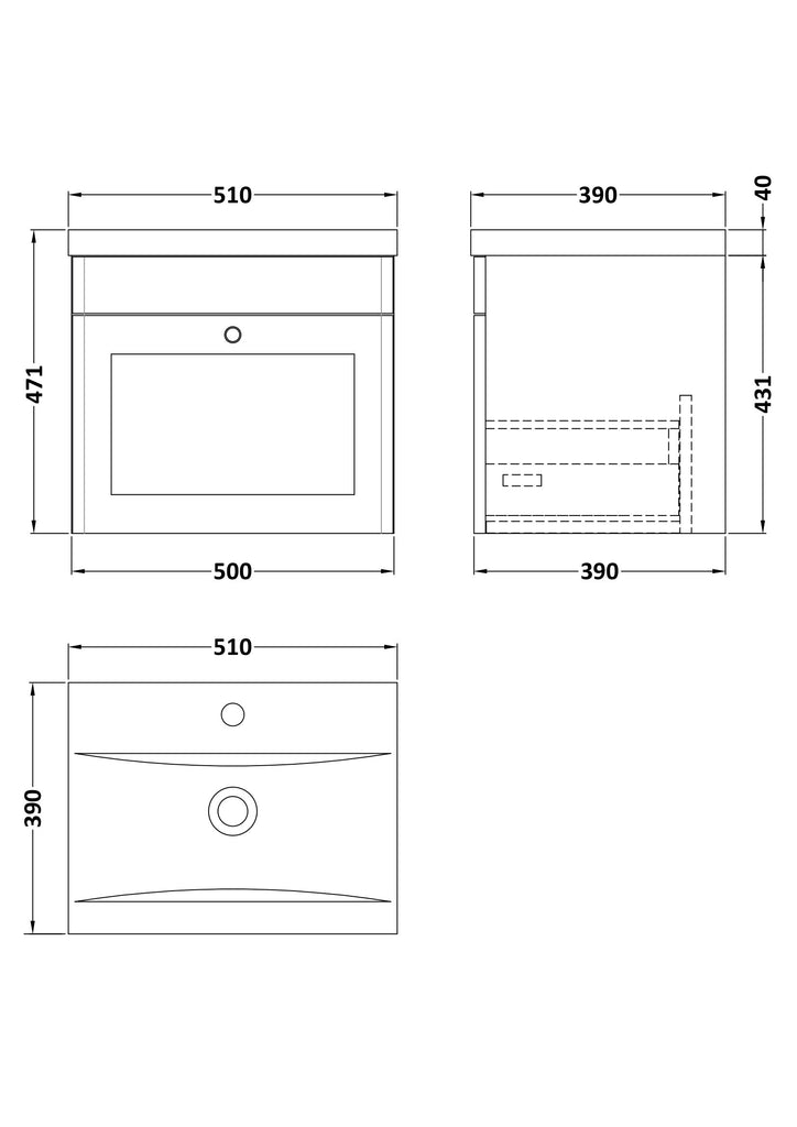 NUIE 500mm Wall Hung 1 Drawer Vanity & Basin 1