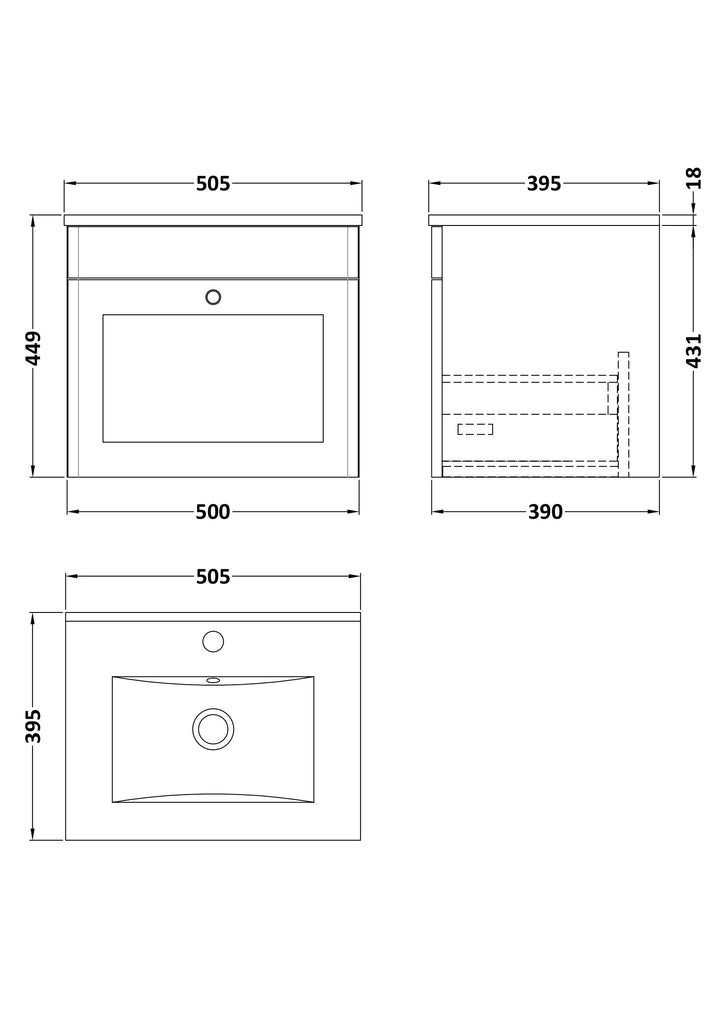 NUIE 500mm Wall Hung 1 Drawer Vanity & Basin 2