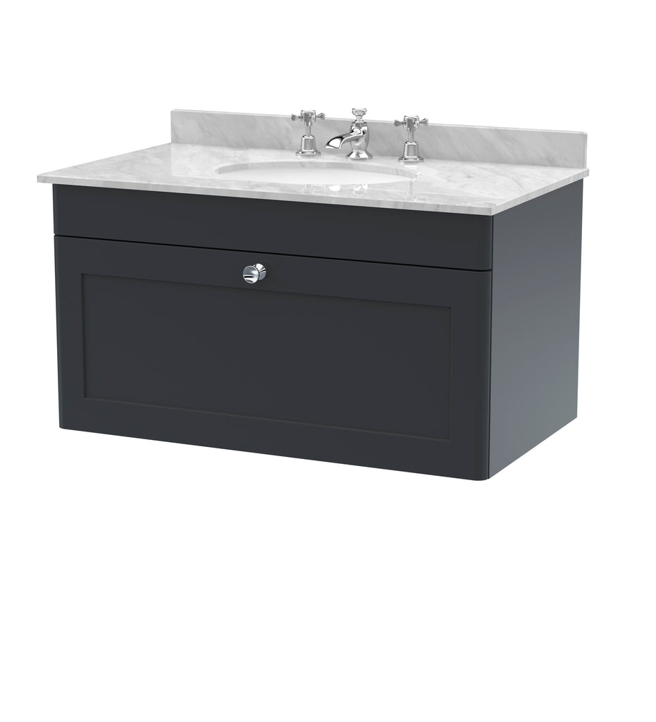 NUIE 800mm Wall Hung 1 Drawer Vanity & Marble Top 3TH
