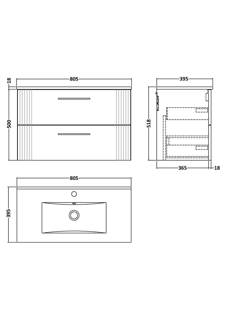 NUIE 800mm Wall Hung 2 Drawer Vanity & Basin 2