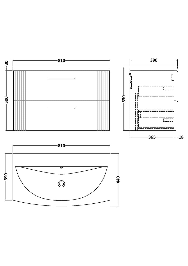 NUIE 800mm Wall Hung 2 Drawer Vanity & Basin 4