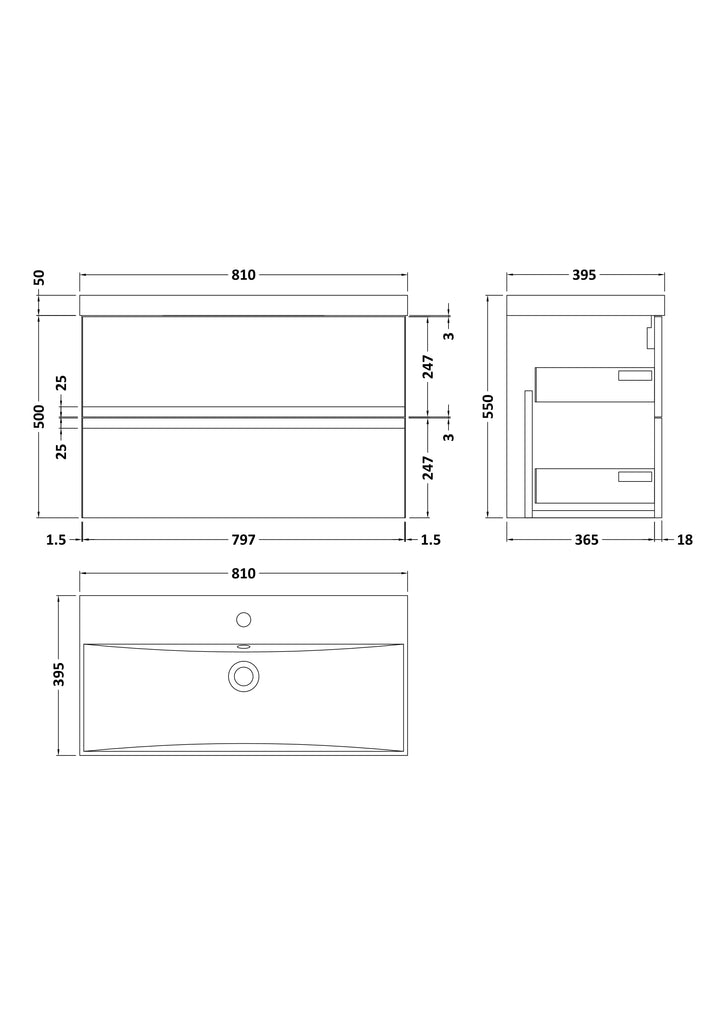 Hudson Reed 800mm Wall Hung 2-Drawer Vanity Unit & Basin 3