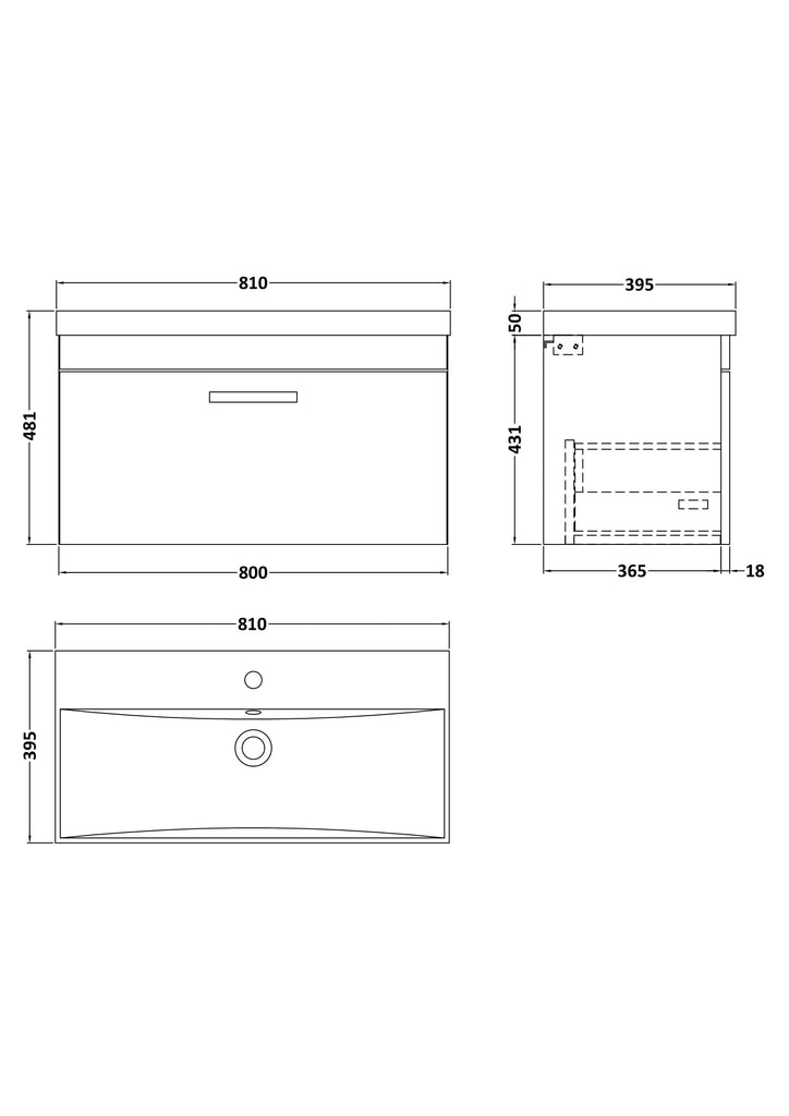 NUIE 800mm Wall Hung Cabinet With Basin 3