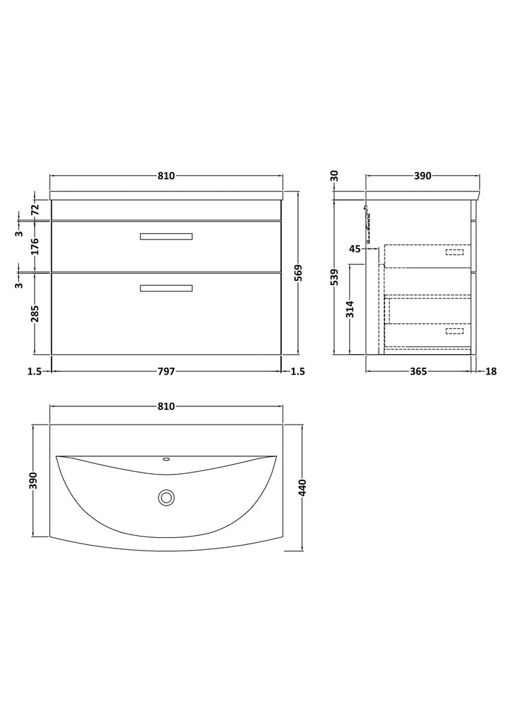 NUIE 800mm Wall Hung Cabinet With Basin 4