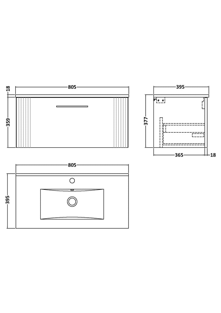 NUIE 800mm Wall Hung Single Drawer Vanity & Basin 2
