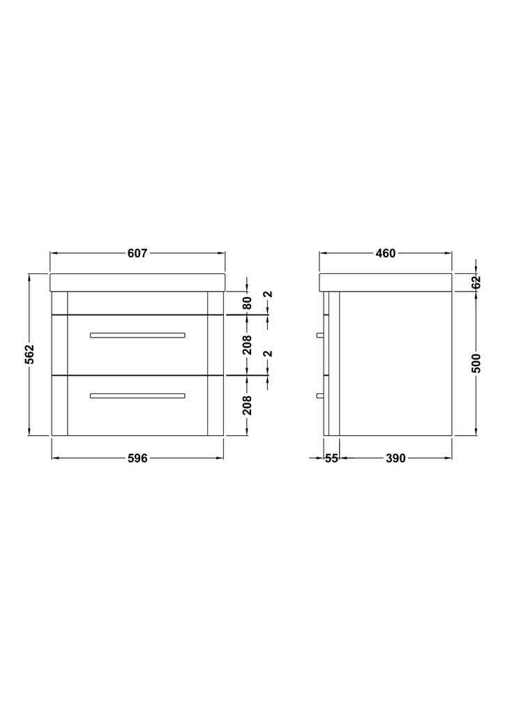 Hudson Reed Wall Hung 600mm Cabinet & Thin Edge Ceramic Basin
