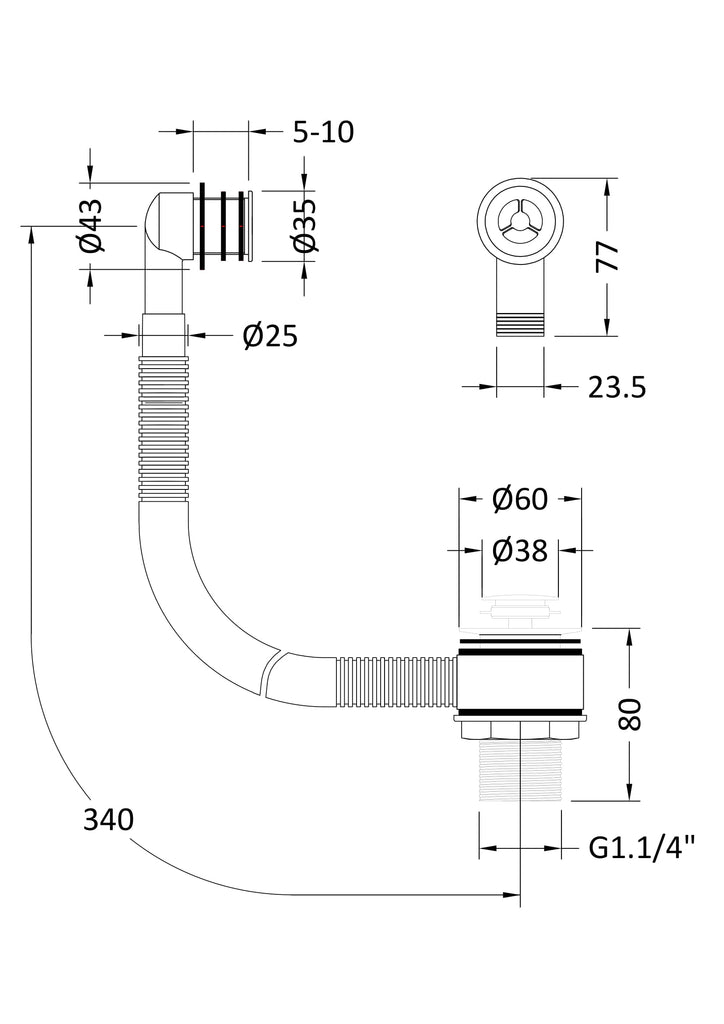 NUIE Stone Basin Waste With Brass Overflow - Chrome