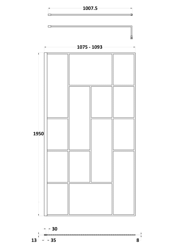 8mm toughened safety glass. Single-sided 'Shower Shield' coated glass. Shower tray sold separately. Includes matt black support bar and profile kit.