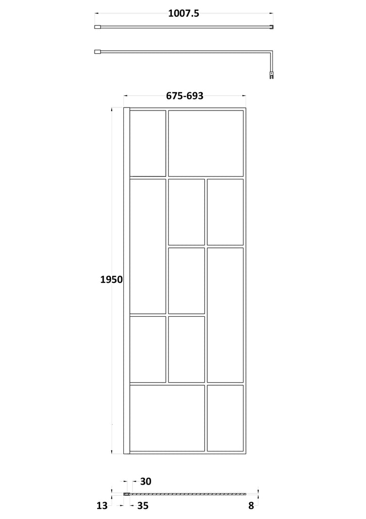 8mm toughened safety glass. Single-sided 'Shower Shield' coated glass. Shower tray sold separately. Includes matt black support bar and profile kit.