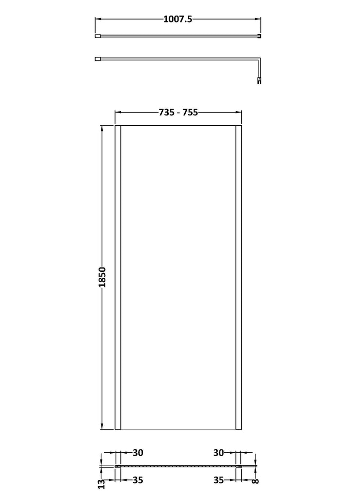 On trend design. 8mm toughened safety glass. Shower tray sold separately. Includes support bar and profile kit.