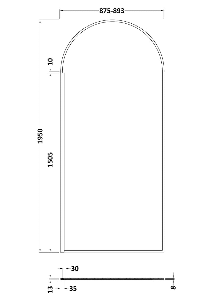 On trend curved design. 8mm toughened safety glass. Shower tray sold separately.