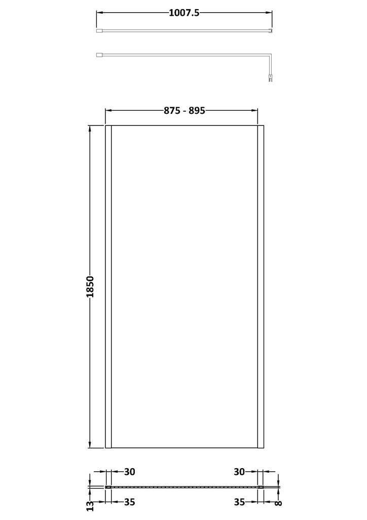 NUIE 900mm Outer Framed Wetroom Screen with Support Bar