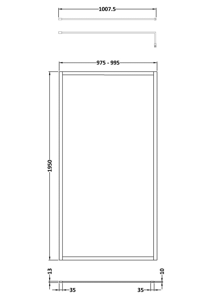 Hudson Reed Full Outer Frame Wetroom Screen 1950x1000x8mm
