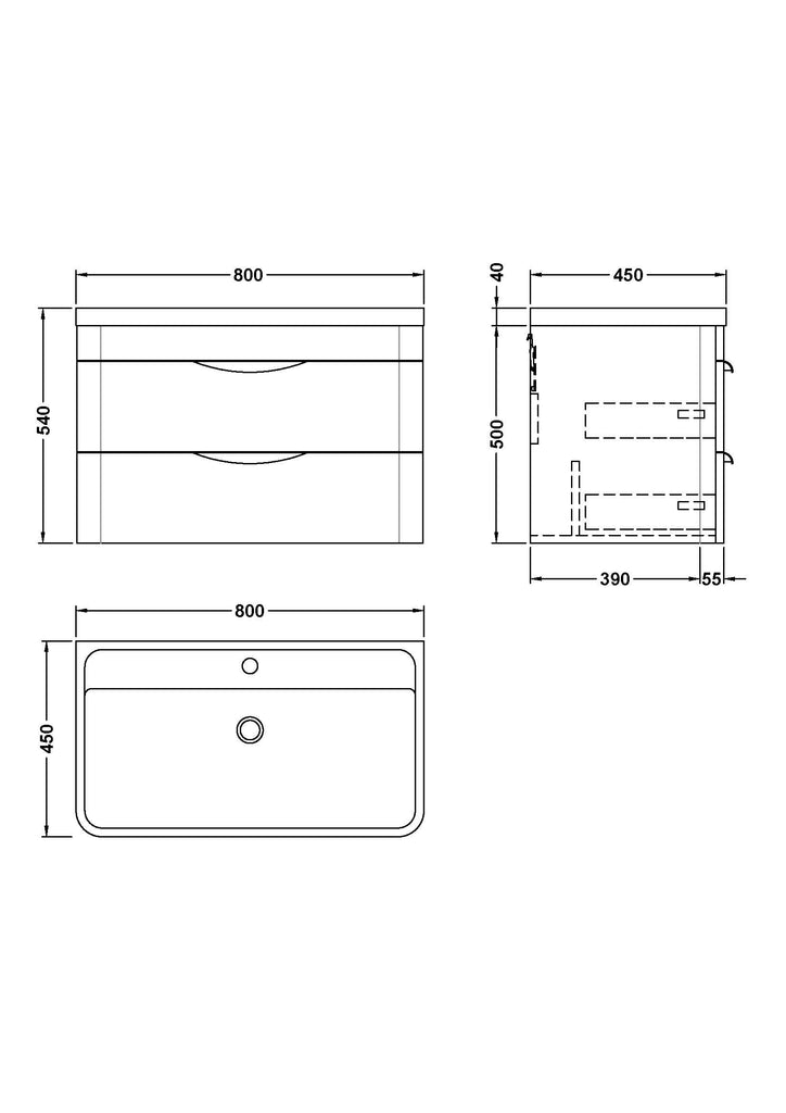 NUIE 800mm Wall Hung Vanity & Polymarble Basin