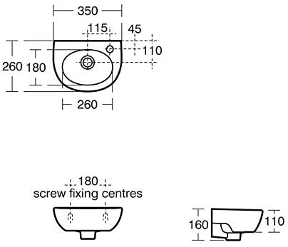 Sandringham̴Ì_21 handrinse washbasins in vitreous china, 45cm̴Ì_and corner handrinse washbasins also available.̴Ì_This smaller 35cm washbasin is suitable for restricted space applications and is supplied in 1 or 2 taphole for wall fixing only.