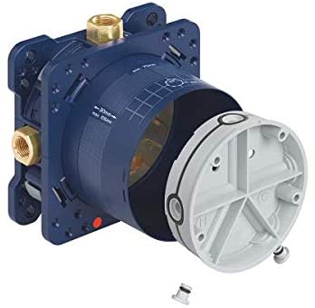Grohe Rapido SmartBox universal concealed installation unit. DN 15 3 outlets 1/2 inch 2 inlets below, 1/2 inch installation depth. 75-105 mm connection unit made of dezincification brass. Push off plug pre-mounted stable installation box and protection cap prepared fixing points for wet and dry installation, sealing collar without trim set.