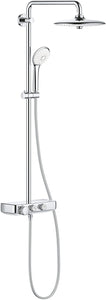 Consisting of: horizontal shower arm 450í«ÌÎ_mm, upper device Adjustable for minimum adapt to existing drill holes, surface-mounted Thermostat with SmartControl, makes it possible to switch between:, Euphoria 260í«ÌÎ_Shower Head (26í«ÌÎ_455), 3í«ÌÎ_jet types:, rain, style train, jet, with ball joint, rotation angle í«̴å± 15í«ÌÎ_í«̴́ Hand shower Euphoria 110í«ÌÎ_Massage, Shower Base White (27í«ÌÎ_221í«ÌÎ_001), 3í«ÌÎ_Jet types:, rain, style train, massage, in Height-Adjustable thanks to the sliding element, Silverflex shower hose 1750í«ÌÎ_mm (28í«ÌÎ_388) GROHE DreamSpray perfect jet, GROHE StarLight Surface, Grohe CoolTouch doesn't burn on hot surfaces, Grohe TurboStat compact cartridge with wax thermo-element, Grohe EcoJoy water-saving technology, GROHE SafeStop safety stop at 38í«ÌÎ_í«̴́C GROHE SafeStop Plus a safety stop at 38í«ÌÎ_í«̴́C and also optional temperature end point at at 32-43í«ÌÎ_í«̴́C GROHE EasyReach, SmartControl: on/off at the mains at the touch of a button and volume control by rotating, integrated shower caddy with SpeedClean anti-limescale system, internal separate water channel, Twistfree against twisting of the shower pipe, suitable for tankless water heaters up to 18í«ÌÎ_kW/h; Minimum Flow Rate: 7í«ÌÎ_litres per minute, Minimum pressure 1.0í«ÌÎ_Bar
